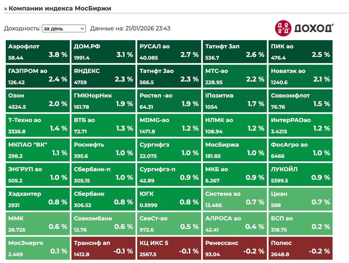 В среду индекс мосбиржи вырос на 1,4% до 2778 пунктов.